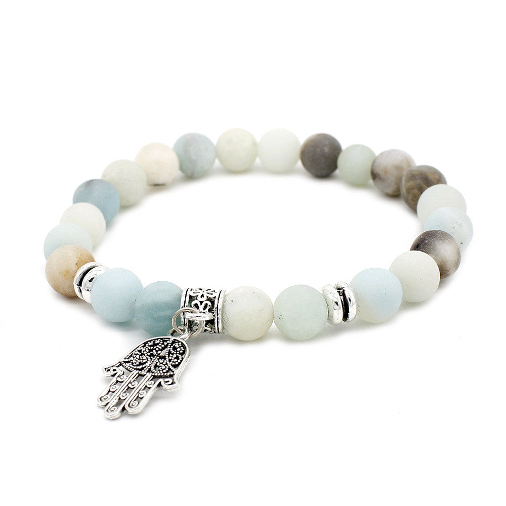 - Amazonit ásványból készült karkötő Fatima keze medállal.