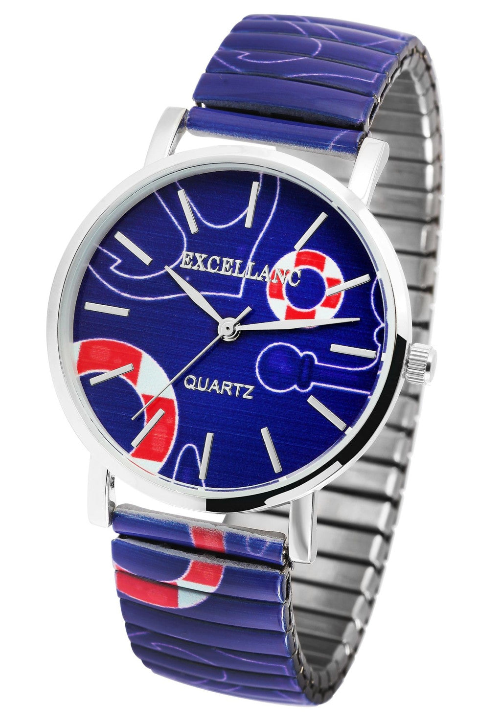 Az Excellanc női karóra kiváló minőségű kvarcszerkezettel rendelkezik. A nemesacélból készült rugalmas szíj 18 mm széles a tok csatlakozásánál, és a hajlékony kialakításnak köszönhetően rendkívül könnyen felhúzható a csuklóra. Az óra kis súlya és rugalmassága rendkívül kényelmes viseletet biztosít. Az óra teljes hossza 19 cm, a szíj hossza minden csuklóméretre igazítható.