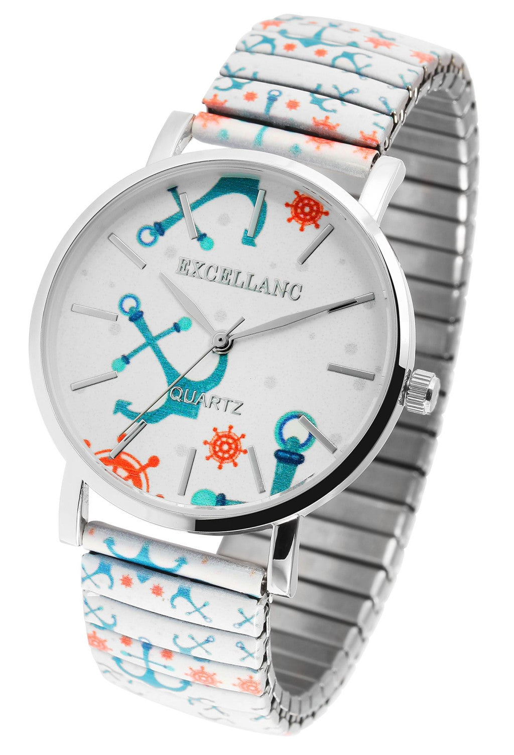 Az Excellanc női karóra kiváló minőségű kvarcszerkezettel rendelkezik. A nemesacélból készült rugalmas szíj 18 mm széles a tok csatlakozásánál, és a hajlékony kialakításnak köszönhetően rendkívül könnyen felhúzható a csuklóra. Az óra kis súlya és rugalmassága rendkívül kényelmes viseletet biztosít. Az óra teljes hossza 19 cm, a szíj hossza minden csuklóméretre igazítható.